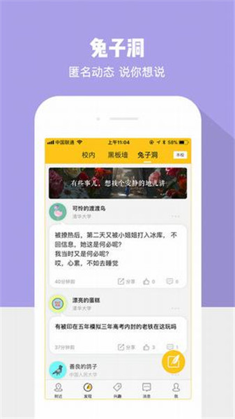【兔子洞,带你进入另一个匿名的世界】:匿名的世界里面,我们每个人都可以放下顾虑,去自由的表达自己,在兔子洞的世界里面,我们更真实的记录自己的感想感受,寻求精神的共鸣和安慰。