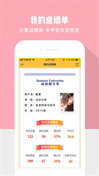 Summer校园app创新性的采用考试答题的趣味交友的方式,让更多的大学生可以更加自然走心的认识彼此,建立朋友关系以及恋爱关系。