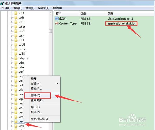 如下图,搜索到某项键值含visio后,右键点击”删除“即可。