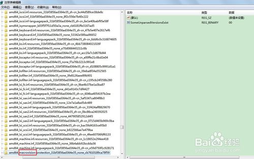 注意:由于有些注册表项名称中虽然含有visio,但只是属于某个单词中的一部分,也被搜索出来了,这种跟visio残余无关的,就不要误删了,免得影响其他软件的运行。如下图的macrovision。
