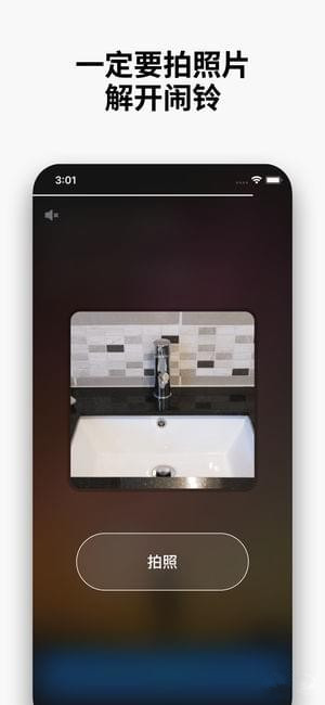 举例来说:如果浴室是睡前设定的场所,醒时必须拍张浴室的相照不然闹钟绝对不会放过你!