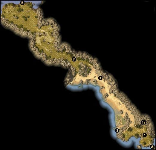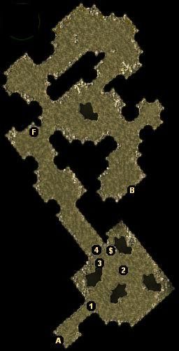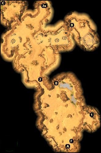 赛伯(#2)会触发支线任务"传说中的野兽",他告诉你有个巨大的怪物在夜间徘徊,它在附近的洞穴里(#2a)。进入洞穴之后,你会发现所谓野兽其实是只古代的蝎子,这只蝎子只是个小boss,干掉它可以得到7500点经验值和两个技能点。