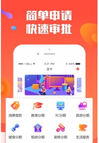 派卡app是一款可以帮助用户进行分期消费的手机借贷软件。派卡app通过实名认证就可以获得额度,在线申请,审批快,通过率高,秒到账,还可以分期购物方便用户生活,派卡app是装在手机里的信用卡。