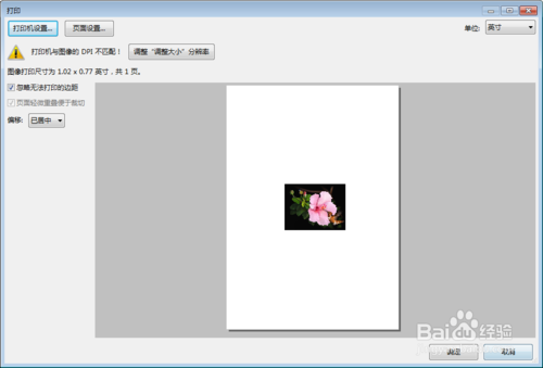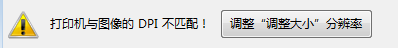 界面上的感叹号提示打印机与图像的DPI不匹配。出现这种情况,可以点击调整“调整大小”分辨率。