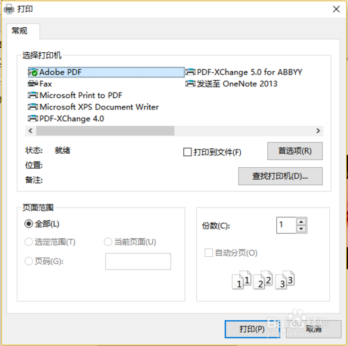通过打印机设置,可以选择打印机,打印张数,如果要设置彩色打印,可以点击首选项,从里面选择彩色。