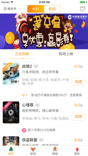 与影城前台售票系统同步,支持全国百家影城实时在线选座、快捷购票