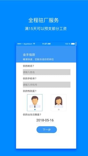 金手指劳务app,实现“有找工作就找金手指”的人力资源服务生态。