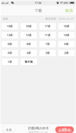 接着上一步,点击你要下载的章节,再点击右下角的“下载所选”,漫画就开始下载啦!|