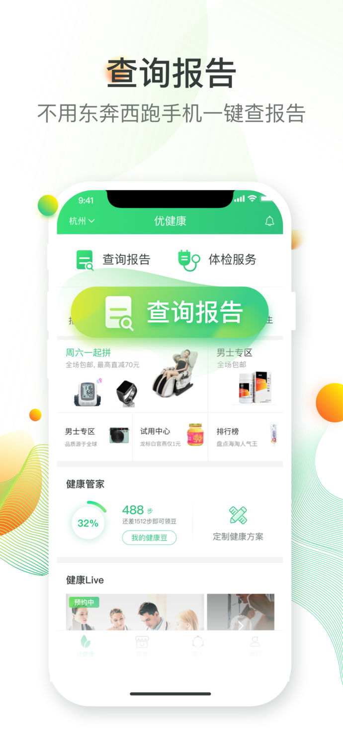 家庭健康档案一个账号全管理,关注全家健康状况;购买体检送健康,购买老人专属体检套餐,孝敬父母;