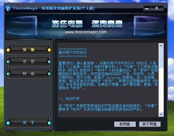 我们点击同意.点击后会出现一个简介的界面.刚接触的人可以看一下.认识一下冰冻精灵的特性..,我直接点击下一步之后会出现一个安装的界面了..