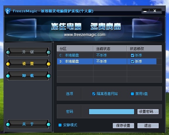 冰冻精灵防穿透能力强,一般的病毒是对它没用的,另外结束进程也可以保护系统,对于能穿透的一般是超级病毒,我们很难遇到,遇到了也是没有办法的。所以就加个Ghost双重,注意:安装冰冻精灵的盘不可以放Ghost。