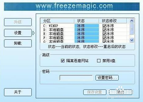 冰点操作简单。安装了DeepFreeze的系统,无论进行了安装文件,还是删除文件、更改系统设置等操作,计算机重新启动后,一切将恢复成初始状态。