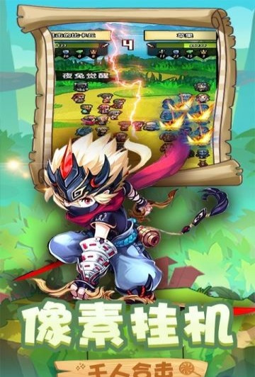 作为一款像素与情怀、策略与休闲、动漫与现实完美融合的挂机放置类手游!游戏中包含佣兵乱战、冒险闯关、《三百英雄》地下城挖矿等诸多独具创意且风格迥异的游戏元素,最多可支持25个英雄同时上场战斗,关机下线后同样可以升级!