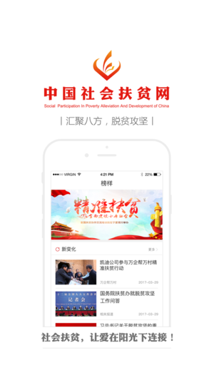 打造全国社会扶贫工作一张网,涉及爱心捐助、扶贫商城、1017筹、展示、榜样五大平台。