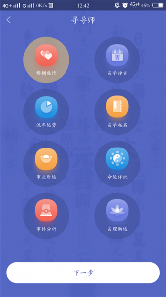 2、大觉易学平台预测范围比较全面,包含命运详批、流年运势、事业财运、婚姻感情、健康孕育、升学求学、宝宝起名、公司起名、个人改名、择吉出行等等,只有你想不到的,没有我们服务不了的。