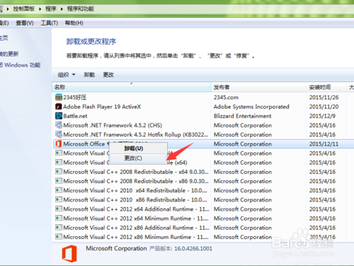 3、进入到程序卸载搜索之中之后,在里面找到我么你的Office2016。