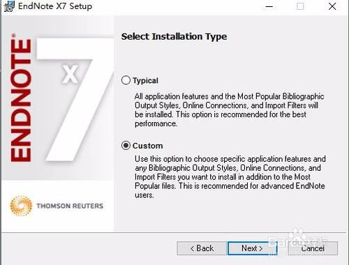 选择【Custom】后,再弹出的对话窗口中点击【Next】