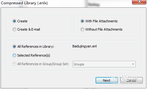可以选择直接创建压缩包还是创建后通过Email传送,包不包括File Attachments,选择哪些文献等,完成后会生成同名的.enlx文件包,使用Endnote可以直接打开使用;