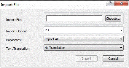 首先介绍单个PDF文件导入,在菜单栏选File-Import打开导入对话框,选择pdf文件,option选PDF,其他选项默认即可,可以以后再研究其具体细节;