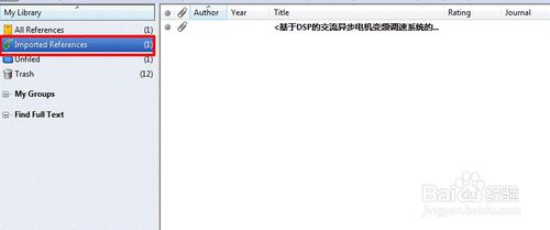 导入成功后会在左边分组窗口新增一个分组Imported References,导入的文献就这归类到这个分组,我们也可以自己改变分组;