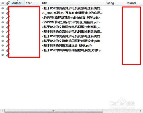 中间是文献显示窗口,在左边分组窗口选择一个分组就会在这里显示相应组的文献,这便是Endnote文献管理的分组功能;显示窗口一般会显示文献的作者、发表日期、标题、标记、出版刊物等信息,方便快速浏览;