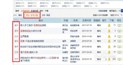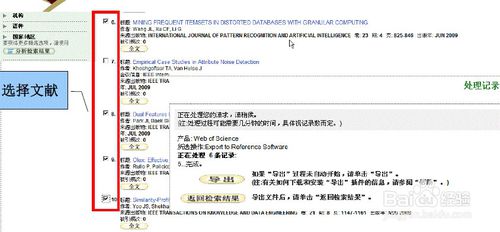 在该列表上选择要导如Endnote的文献,可以同时选择多篇,如图: