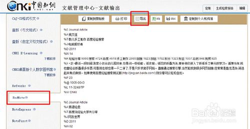 在页面左边的工具选项中选择Endnote,然后选择导出会下载txt格式的文献信息