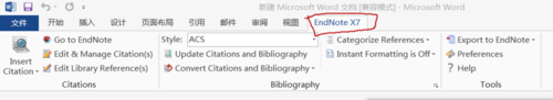返回主界面可见工具栏上方的“EndnoteX7”。
