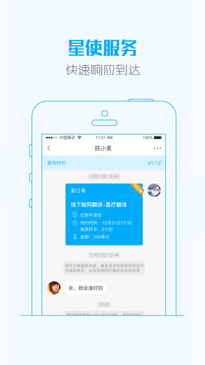 【星使服务】普通的星使服务,当您在国外语言和交通不通、需要精通当地风土人情的居民时,您可以直接在平台发起需求,当地的星使服务者会充分满足您的向导需求,充当您在异国他乡的眼睛和嘴巴!