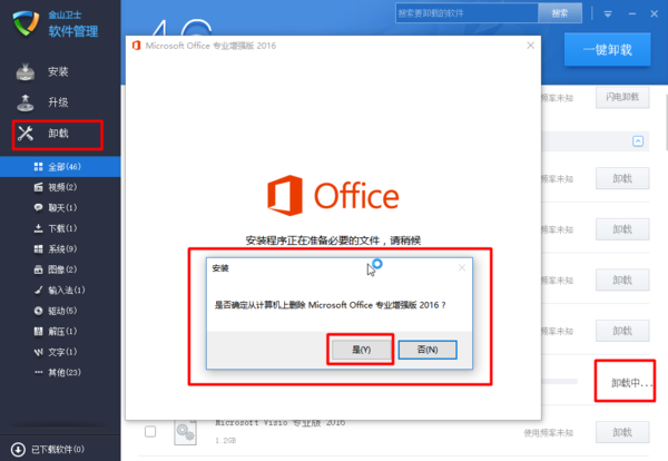 office2013怎么卸载?1、采用第三方卸载工具(比如金山卫士→软件管理),选择需要卸载的office2013(图示为卸载office2016,参考用);