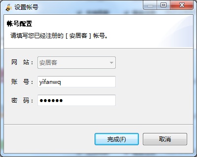 2.在安居客的“操作”区,点击“设置帐号”,弹出如下窗口: