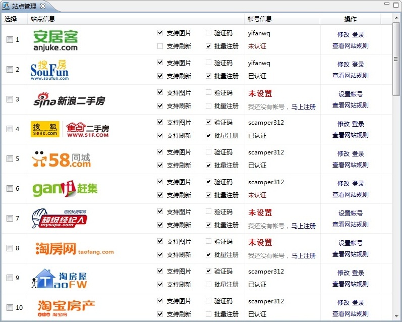 主要是为站点设置帐号,为发布房源和刷新房源做前期准备工作。