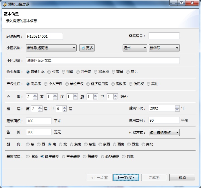 3.选择小区,填写面积和价格,然后点击“下一步”,进入如下界面: