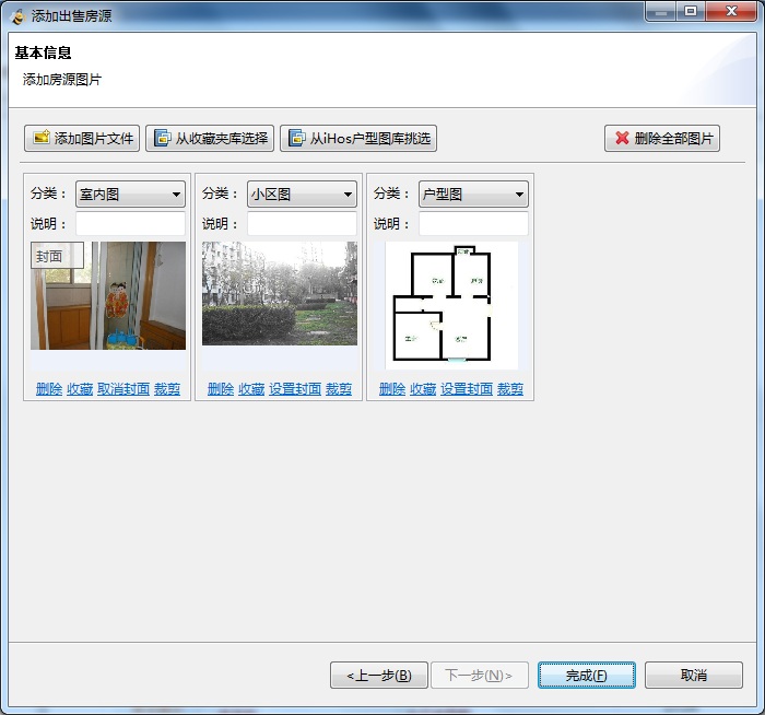 个人图片收藏夹,收藏经常使用的图片,录入房源时可直接使用