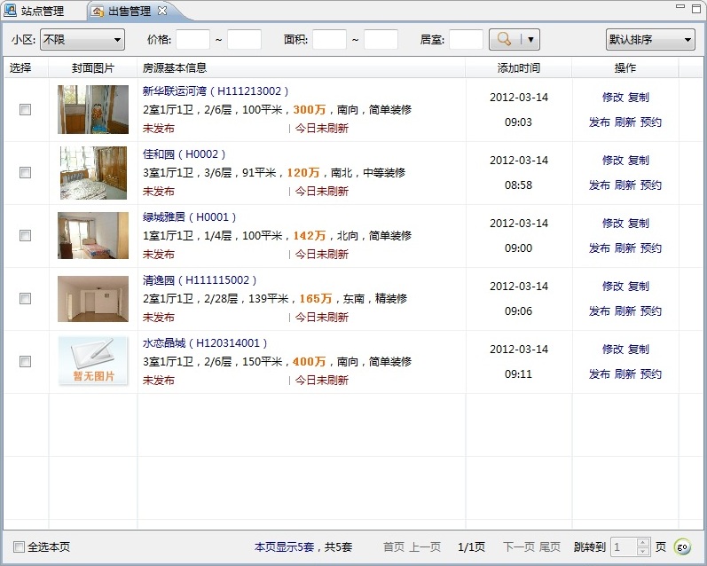 1.在功能导航区,双击“房源管理”,打开主界面,如下图: