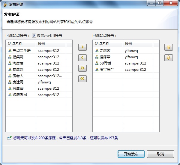 1.发布房源 支持向安居客、搜房帮、新浪、焦点、易居、超级经纪人等30多个网站发布房源信息;2.刷新房源 同步刷新已发布到网站的房源,还可以预约帮您完成手动刷新;