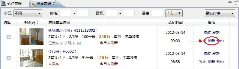 1.在第一条房源的“操作”区,点击“刷新”,弹出如下窗口: