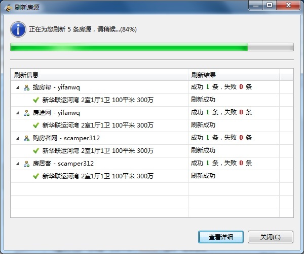 3.房源刷新时,系统自动打开刷新进度窗口,如下图: