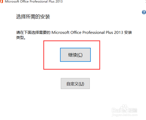 2、进入Office 2013安装页面,选择“我接受此协议的条款”后,点击“继续”安装软件;