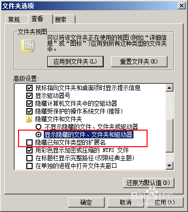 b.单击“工具”>“文件夹选项”,然后单击“查看”选项卡。
