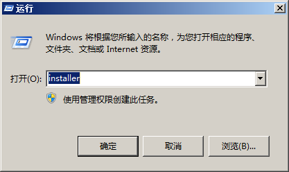 按下win+R键,弹出运行框,输入 “installer”(无引号),跳转到installer目录下。(注意: 此操作可打开 %windir%\Installer 文件夹)