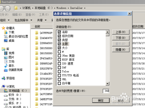 按下Alt键弹出菜单栏,选择查看>选择详细信息>勾选『主题』选项,并将『选中列的宽度』设为340,并保存。(注意: 可能需要几分钟时间,主题才会显示在每个 .msi 文件旁边)