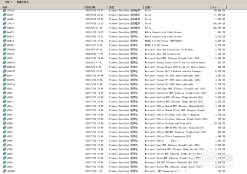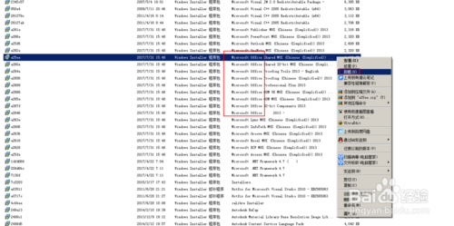 寻找installer目录下所有『主题』有关office的msi文件,并全部右键卸载(其中有一个Office 2013本体可能无法删除,不用管)。