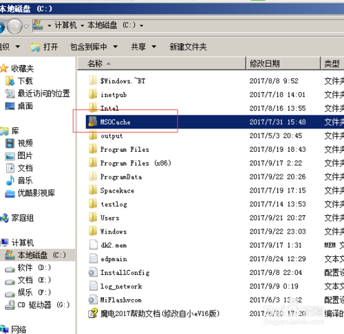 寻找每个磁盘根目录下的MSOCache文件夹,打开“MSOCache”文件夹中的“All Users”文件夹(此为隐藏文件夹,应开启文件夹选项里的显示所有隐藏文件),并删除该目录中的包含的每个形如0FF1CE}-的文件夹。示例:{90150000-001B-0409-0000-0000000FF1CE}-C