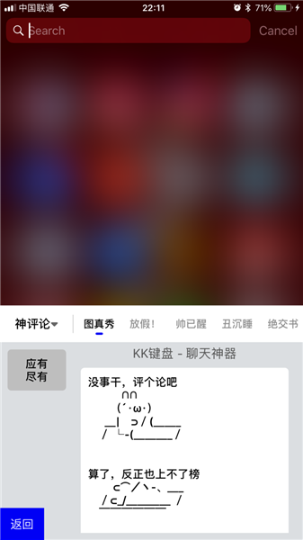 你*****好!我****!你们****!聊天回复全被屏蔽?使用kk键盘,不存在的!