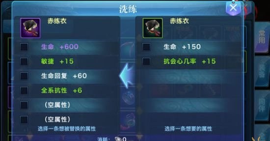 通过洗炼功能来互相替换,洗炼后的装备附加属性会改变,高品质的装备只能通过不断的洗炼来获得不断提升的附加属性。