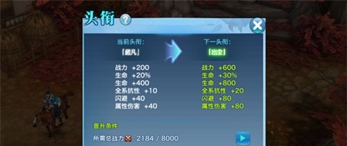 头衔系统在不仅代表玩家战力的高低,每次头衔的晋升还将再次提升玩家的战斗力,就拿初级的“超凡”头衔晋升“出尘”来说,玩家仅仅通过晋升就可以获得600战力的提升,其中包括生命值800及30%的双重提升、全系抗性+20点加成、闪避、属性伤害+80点的加成。对比前期战力来看,仅仅通过晋升战力玩家就能直接提高将近8%的战力加成更不用说自身属性的全面提升,所以不难想想,高头衔玩家在对战低头衔玩家时必将有着天然的压制效果。