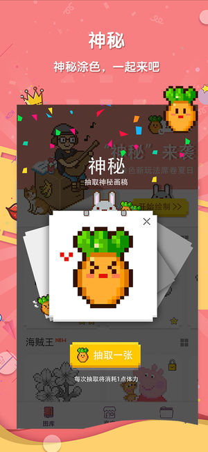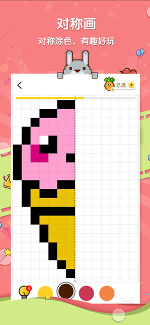 格子画像素涂色游戏,消遣时光的绝佳选择。上手简单易操作,根据数字提示,在像素格中填入对应颜色,即可创作出一幅美轮美奂的涂色作品。 丰富多彩的画稿图库,总有你喜欢的那一款,轻松欢快的游戏过程,既能放松减压,又能提升专注力。众多Q萌图片,让人爱不释手,根本停不下来!快来创作属于你的像素画,让好友为你点赞吧