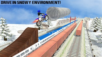 火车摩托特技手游是一款非常刺激的摩托车游戏。玩家只需要简单的操作,就能控制人物做出炫酷的摩托车特技动作,让你体验在火车上进行摩托飙车的刺激感受。