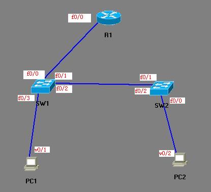 使用DynamipsGUI搭建自己的网络测试环境根据下面的拓扑图搭建我们的网络测试环境: